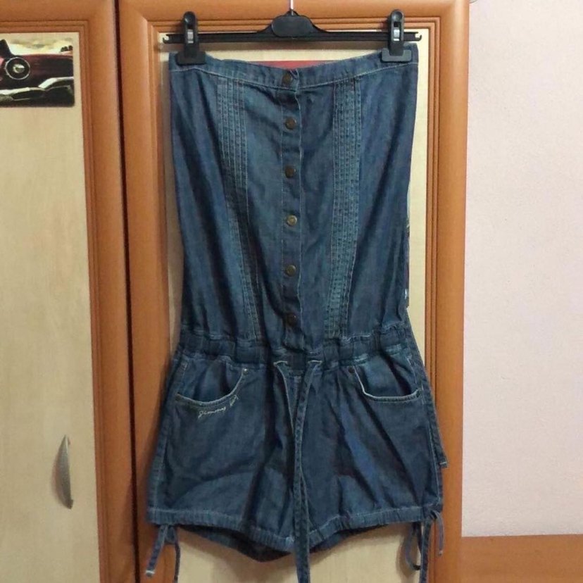 Lacivert denim kumaştan, düğmeli ve straplez tasarımlı. Cepli ve belden bağlamalı, ince kesimli tulum. Rahat ve günlük kullanım için uygun.