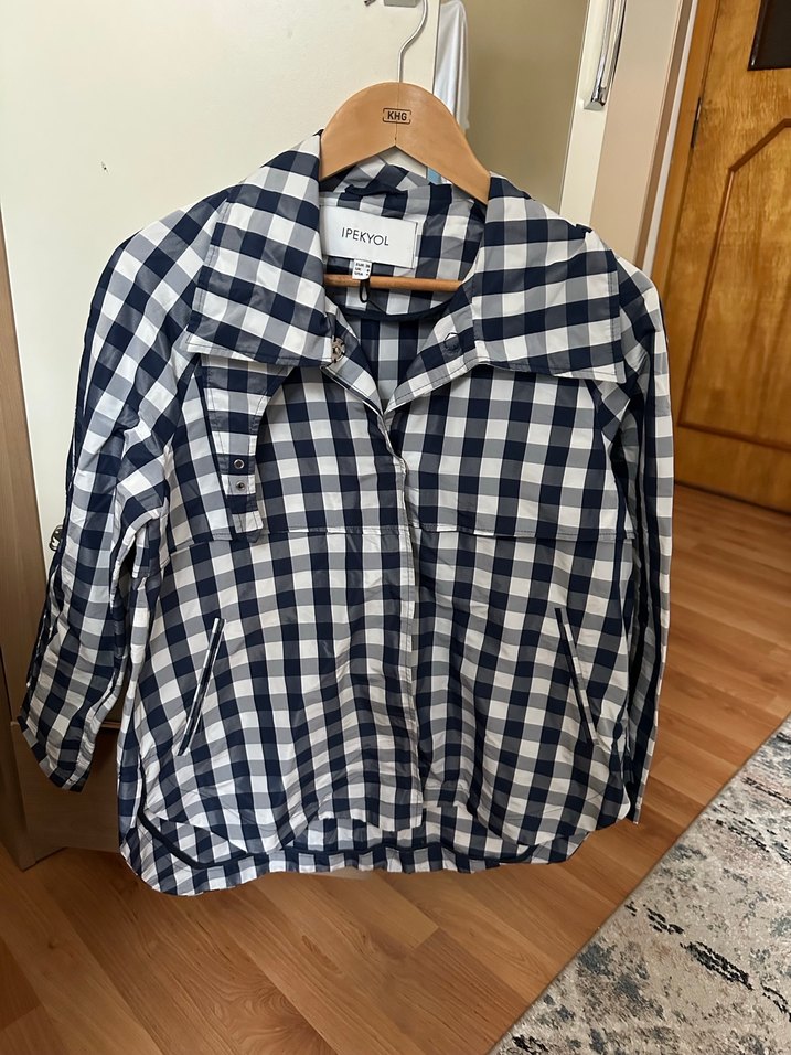 Lacivert ekose desenli, düğmeli pardesü. Uzun kollu, notched lapel yakalı ve rahat bir kesime sahip. Günlük kullanıma uygun.