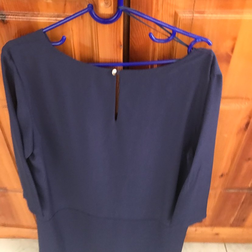 Düğmeli, yuvarlak yakalı ve uzun kollu lacivert renk ve ipeksi dokuda. Minimalist ve şık bir tasarıma sahip. toplantı günlük işhayatı olabilir 2 koltuk arası 53 cm. boyu 89 cm dir
