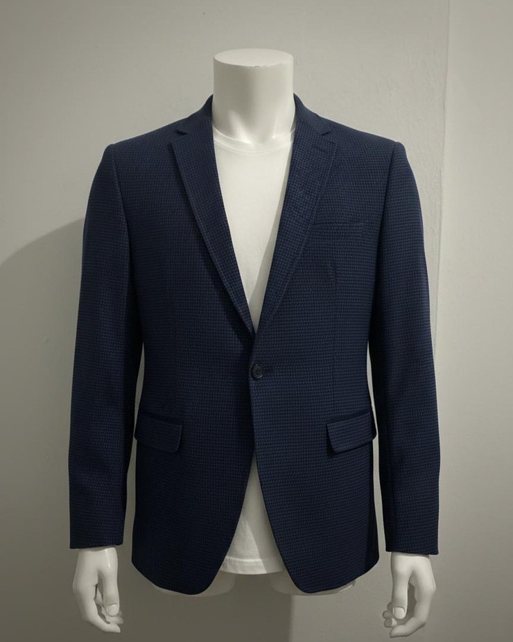 Lacivert renkli, düğmeli, normal boy, klasik kesim erkek ceket. Notch yakalı ve uzun kolludur, iş ortamına uygundur.