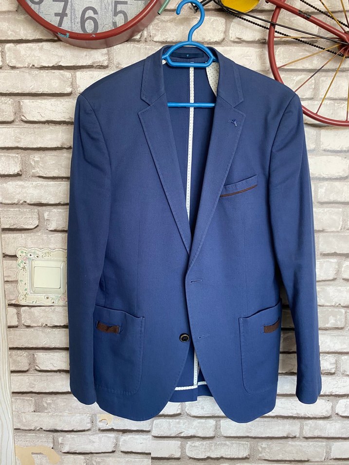 Düğmeli, lacivert erkek ceket, normal uzunlukta ve regular fit. Notch yaka, uzun kollu, ofis ve günlük kullanıma uygun sade tasarım. Hicbir deforme yoktur