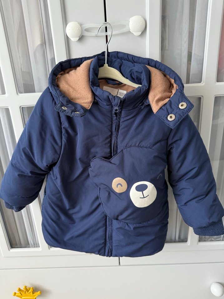Düğmeli ve yaka detayı bulunan, baskılı ayı figürlü lacivert çocuk mont. İç kısmı yumuşak ve sıcak tutan fleece kumaşla kaplı 2 yaşa da uyumludur geniş kalıplıdır