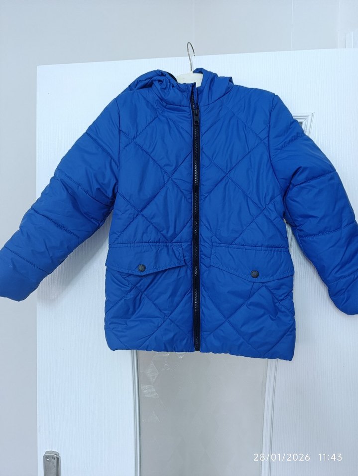 Düğmeli, kesimli yakalı, lacivert erkek çocuk mont. Yumuşak ve sıcak dokulu kumaştan, sokak stiline uygun.