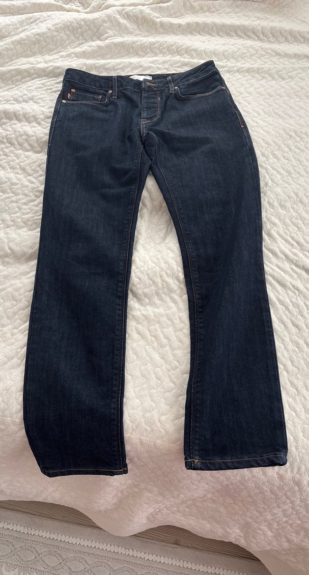 Düğmeli, normal boy, lacivert renkte erkek denim pantolon. Rahat kesimi ve sade tasarımıyla günlük kullanıma uygundur.