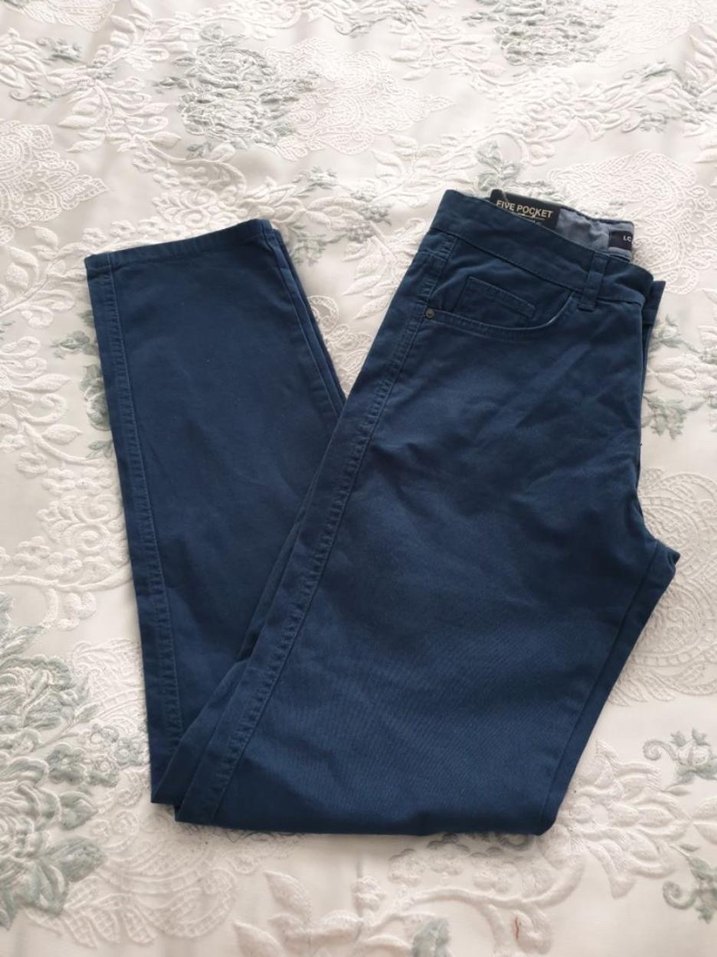Düğmeli, lacivert erkek denim pantolon, normal boy ve regular fit kesim. Günlük rahat kullanıma uygun, desen içermeyen normcore tarzda. Bel37 boy105