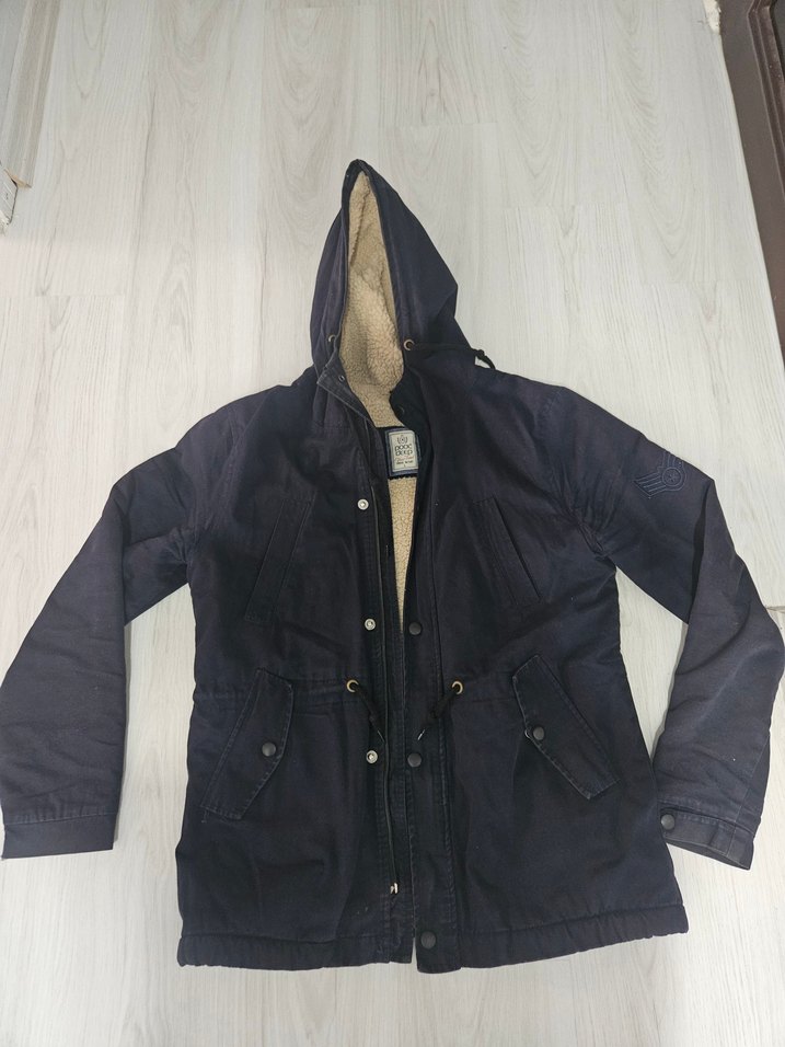 Lacivert erkek midi mont, düğmeli ve uzun kollu. Normal kesim ve yumuşak iç astarlı, kapüşonlu rahat bir tasarıma sahip.