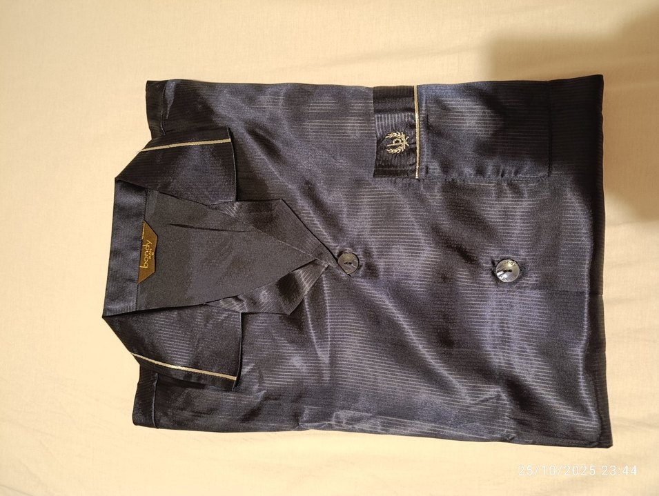 Düğmeli Lacivert Erkek Saten Pijama Takımı