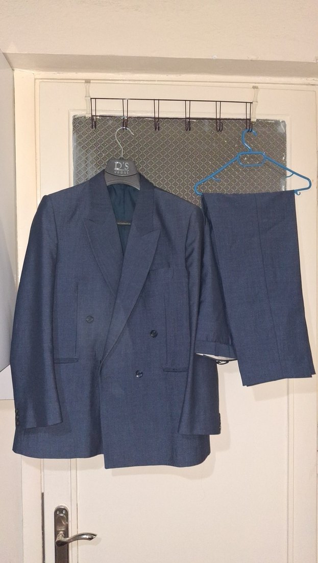 Lacivert renkte, düğmeli erkek takım ceketi. Notlu yakalı, normal kesim ve askılı kollu olup klasik ve desensiz tasarıma sahiptir.