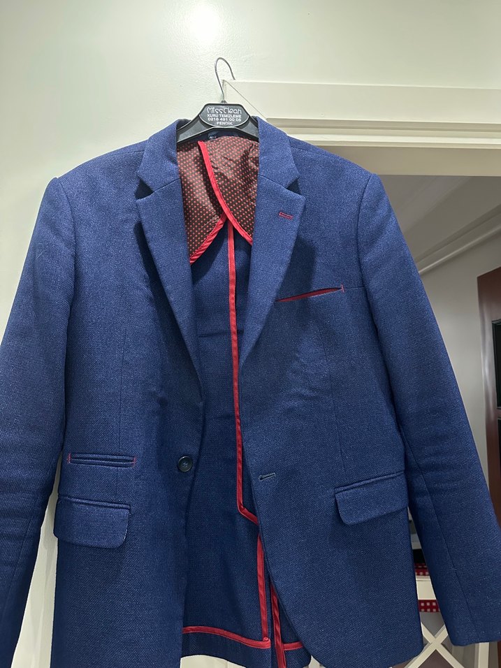 Düğmeli Lacivert Erkek Takım Elbise ve bordo ceket