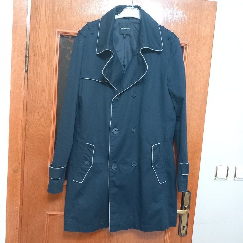 #Lacivert erkek trençkot, düğmeli ve notched yaka detaylıdır. Sentetik kumaştan, midi boyda, uzun kollu ve regular kesimdir. Günlük ve iş tarzına uygundur. ️s m uyumlu #kotonmen #trenckot #lcw #zara #hm #trendyol