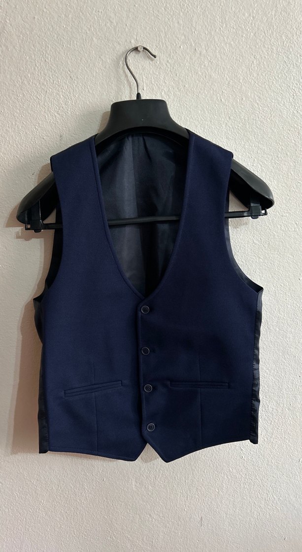 Düğmeli, kesik yakalı lacivert erkek yelek. Normal boy ve regular fit, sentetik kumaştan üretilmiştir. Ofis ve sokak stili için uygundur. İki kol arası 42 Uzunluk 53 Arkası saten Defo yok
