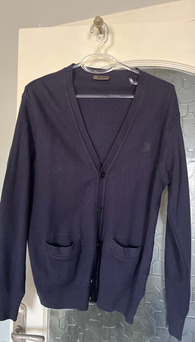 Düğmeli ve yakalı bu erkek yün hırka, uzun kollu ve normal boydadır. Lacivert rengi ve sade deseniyle günlük rahat stil için uygundur. Sabri özel marka ürün şuan kendı sitesınde 2800 tl dir