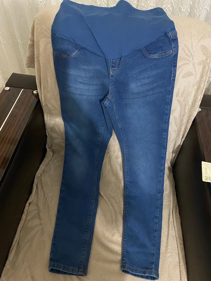 Düğmeli tasarıma sahip, destekleyici ve esnek bel bantlı, lacivert kot hamile pantolon. Günlük rahatlık için uygundur. Koyu mavı renk