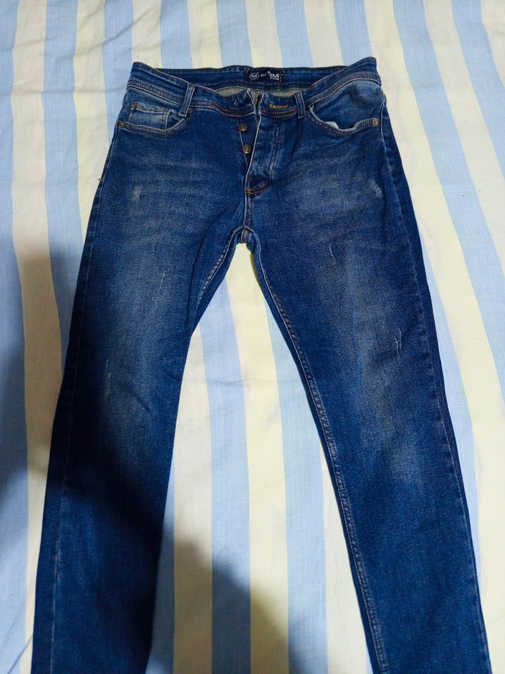 Düğmeli ön kısma sahip, normal boyda ve regular fit lacivert denim jean. Günlük sokak stili için uygun. ✨ sadece bir düğmesi eksik onun dışında yeni gibi rengi canlı akşam çekildiği için öyle durmuş