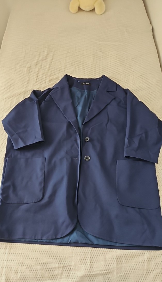 Kadınlar için düğmeli, kısa kollu, normal kesim ve midi boyda lacivert blazer ceket. Ofis kullanımı için sade ve desen içermeyen şık tasarım.
