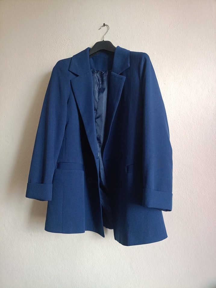 Düğmeli, lacivert kadın blazer ceket, açık yaka ve uzun kolludur. Normal kesim ve midi boyda, ofis ve günlük kullanıma uygundur. Rahat ve sıcak dokulu kumaştan üretilmiştir.