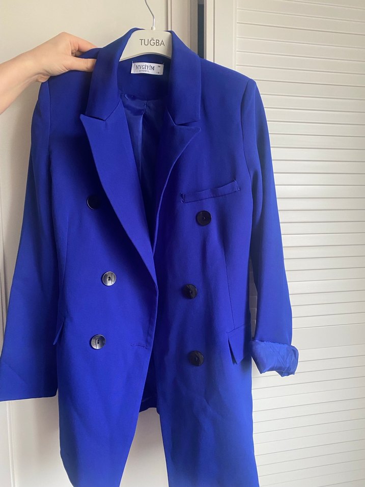 Düğmeli, kesik yaka tasarımlı bu kadın blazer ceket, midi boyda ve regular fit kesime sahiptir. Lacivert, parlak ve ipeksi kumaştan üretilmiştir. Ofis ve günlük kullanıma uygundur.