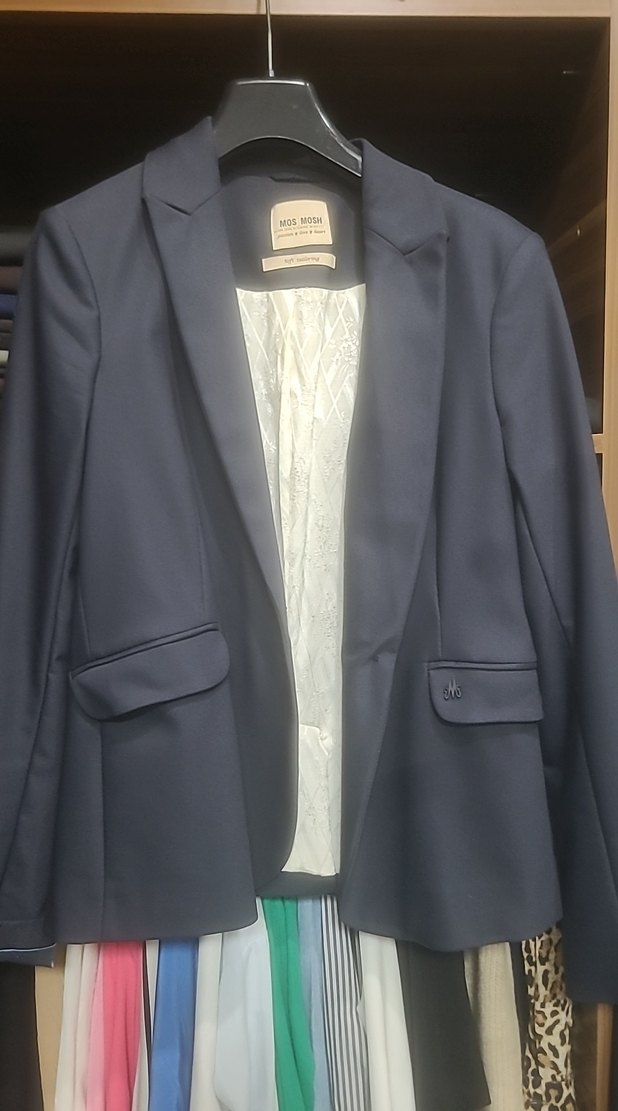 Lacivert düğmeli kadın blazer ceket, klasik yaka ve uzun kollu. Ofis için uygun, normal kesim ve ipeksi dokuda. YURT DIŞINDAN ALDIM SORUNSUZ TURKİYEDE BENZERI YOK KALİTESİ ASTARINDAN BILE BELLI OLUYOR BIR DEFA TOPLANTIDA GİYDİM ARTIK OLMUYOR