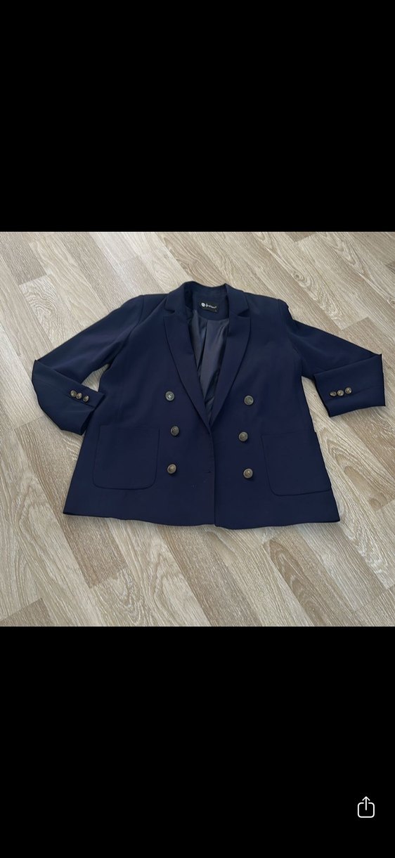 Lacivert renkte, düğmeli ve yakası kesik detaylı kadın blazer ceket. Uzun kollu, normal kesim ve midi boyda, sentetik kumaştan üretilmiştir. Ofis ve günlük şıklık için uygundur.