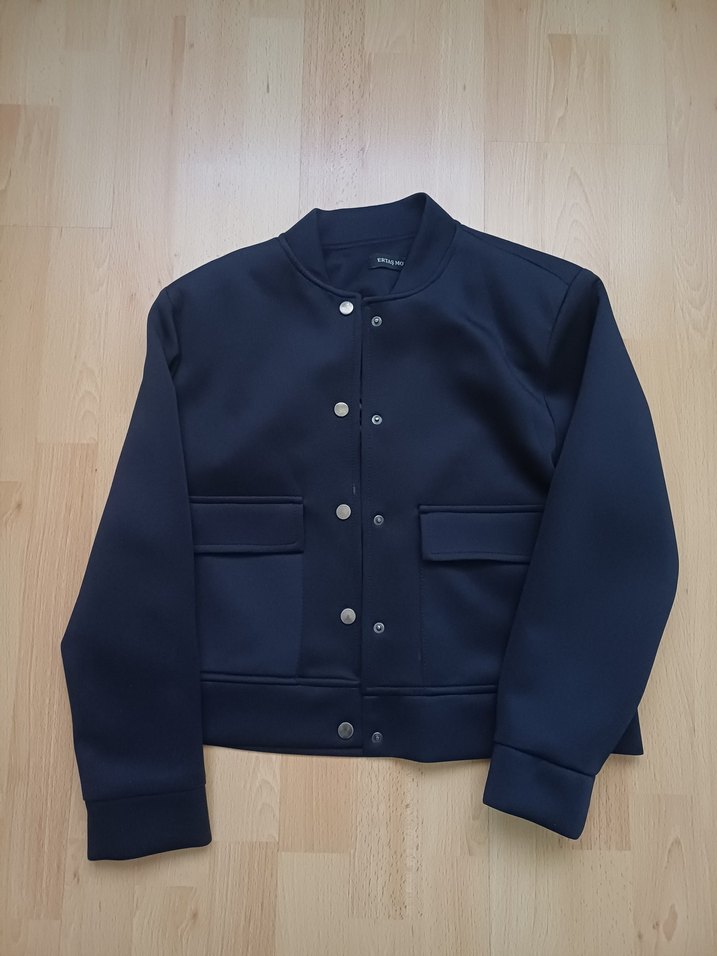 Düğmeli, lacivert kadın ceketi; çıtçıtlı, yakası kesik, uzun kollu ve orta boy. Düz, deseniz, günlük ve iş stiline uygun, rahat kesim kumaş yumuşak ve sıcak.