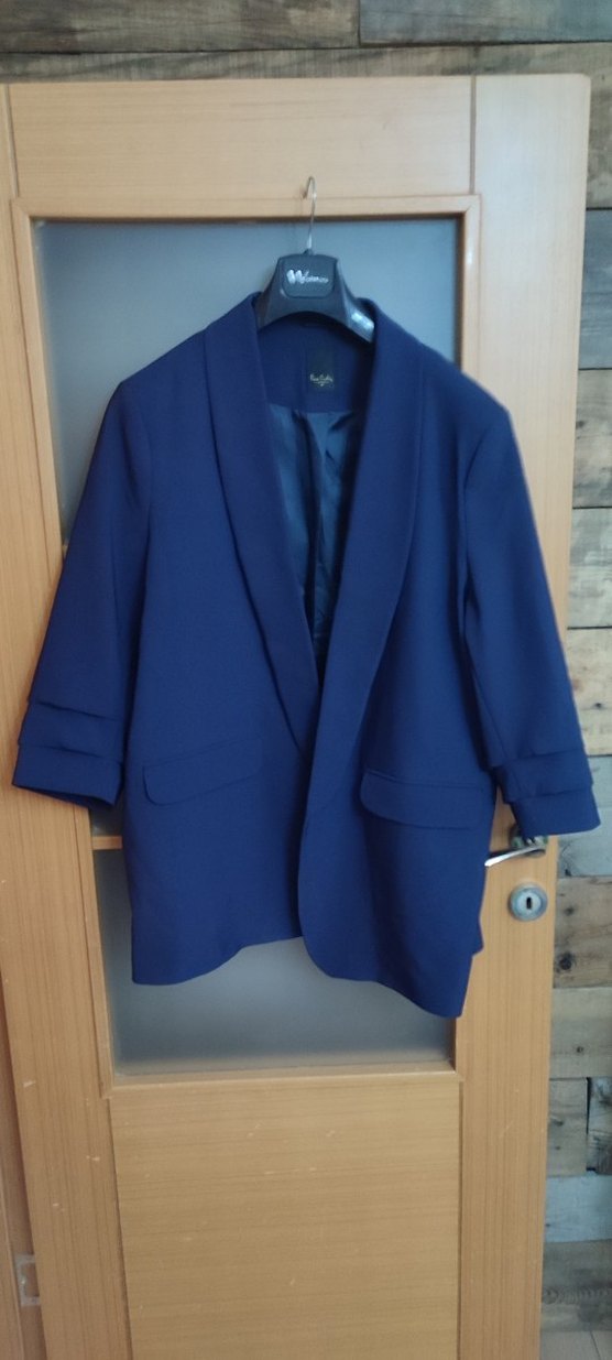 Düğmeli, lacivert kadın ceket, notched yaka ve uzun kolludur.Pierre Cardin marka lacivertli 48 beden