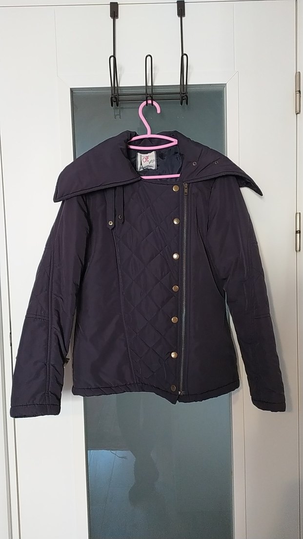 Lacivert renkli kadın ceketi, düğmeli ve kesimli yaka detayına sahiptir. Uzun kollu ve normal boyda, minimalist sokak stili için uygundur. 40 beden olmasına rağmen kalıbı küçüktür 36-38 arası olarak düşünebilirsiniz.
