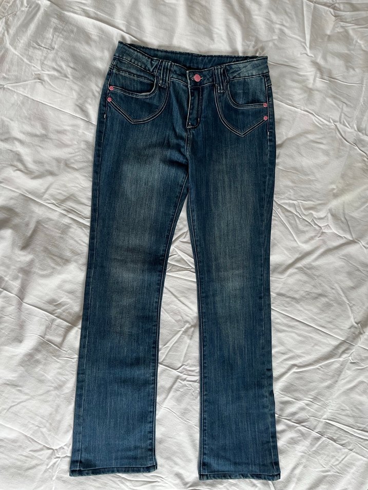 Düğmeli,dümdüz lacivert kadın denim pantolon, günlük kullanıma uygun. 13/14 yaş.
