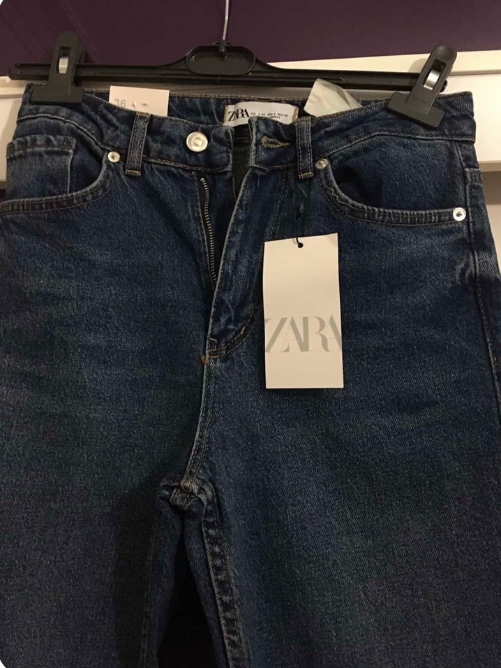 Düğmeli ve baskılı detaylara sahip, normal boy lacivert kadın denim pantolon. Rahat kesimiyle günlük sokak stiline uygundur.