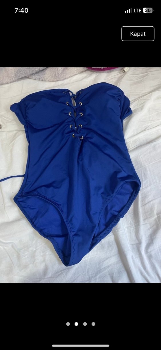 Düğmeli detaylı, lacivert, vücuda oturan kadın mayo. Atletik ve cesur tarzıyla plaj için uygun.