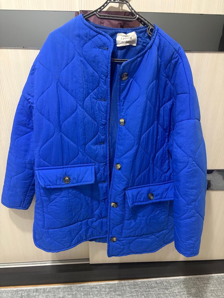 Düğmeli önü, uzun kollu ve bol kesimli lacivert kadın midi ceket. Yumuşak ve sıcak kumaştan, rahat ve gündelik kullanıma uygun. İki cepli, notlu yaka detaylı.