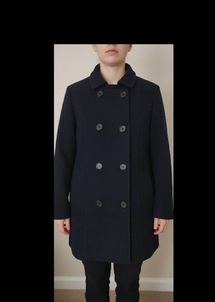 Lacivert renkli kadın midi kaban, kesik yakalı ve düğmeli ön tasarıma sahiptir. Uzun kollu ve regular fit, yumuşak ve sıcak kumaştan üretilmiştir, ofis için uygundur. Desensiz ve minimalist stilde.