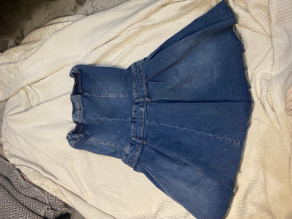 Düğmeli, parlak lacivert kot kumaştan yapılmış, normal boy ve mini uzunlukta. Günlük rahat sokak stili için uygundur.
