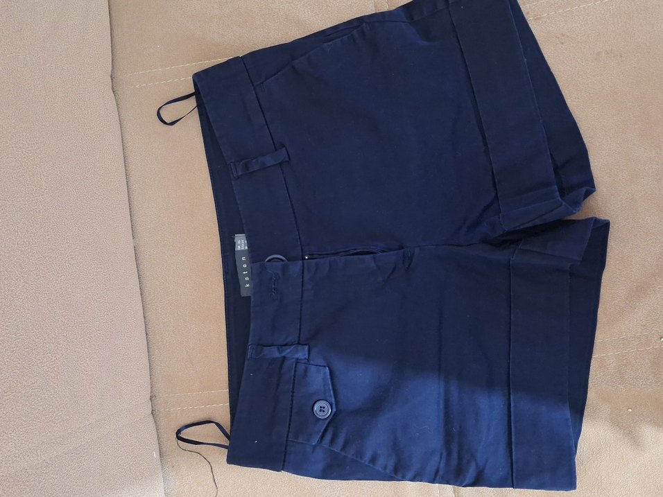 Düğmeli, normal boy lacivert kadın şort, iş ve günlük kullanıma uygundur.