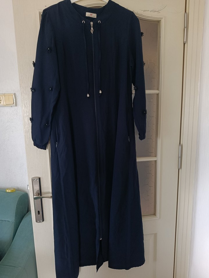 Düğmeli Lacivert Kadın Uzun Kaban ferace