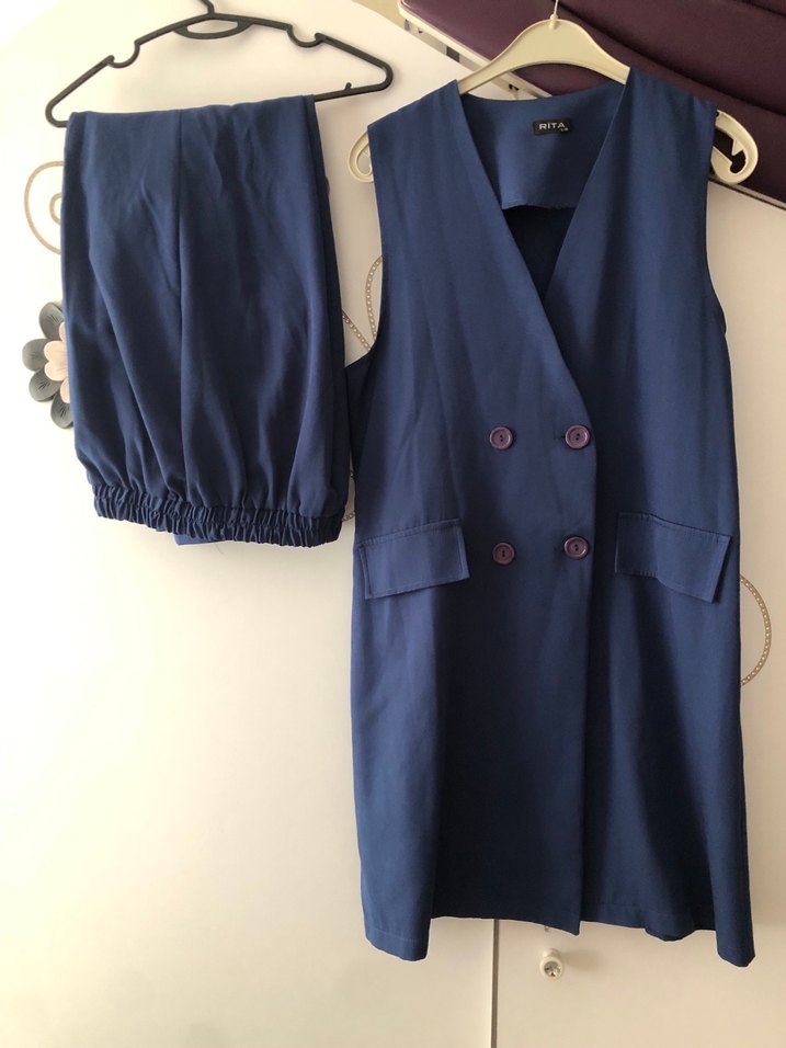 Düğmeli Lacivert Kadın Uzun Takım