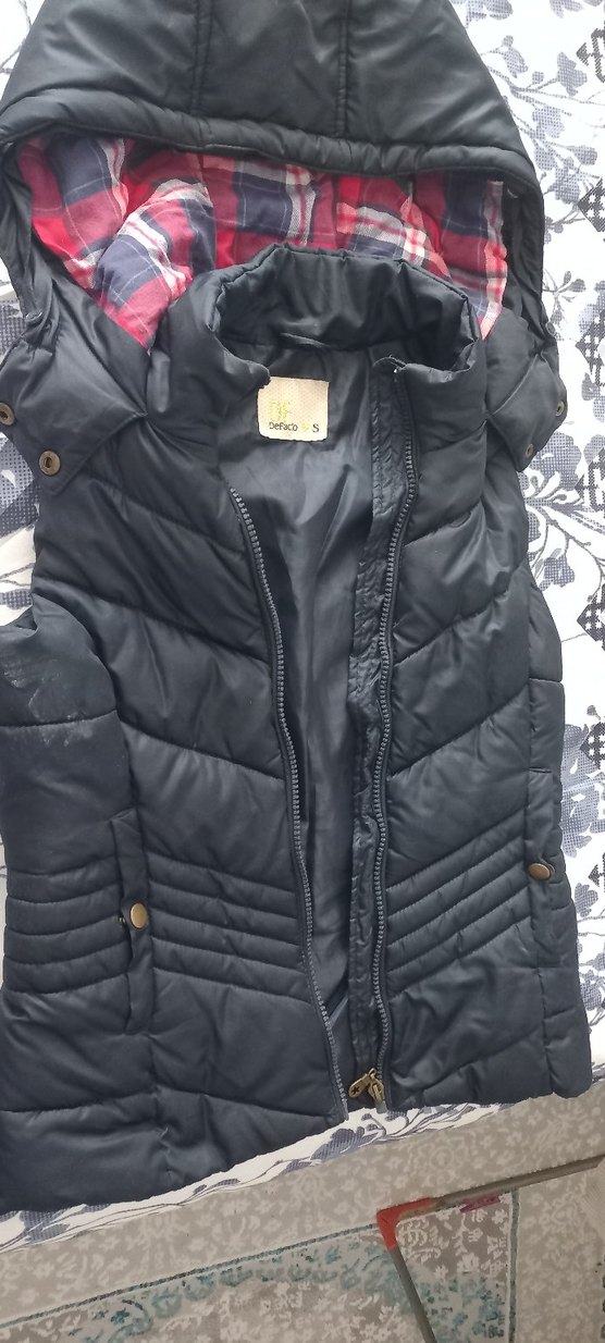 Düğmeli, lacivert renkte, sentetik kumaştan yapılmış, normal midi boyda, yaka detaylı ve kolsuz kadın yeleği. Street style ve günlük kullanıma uygun.