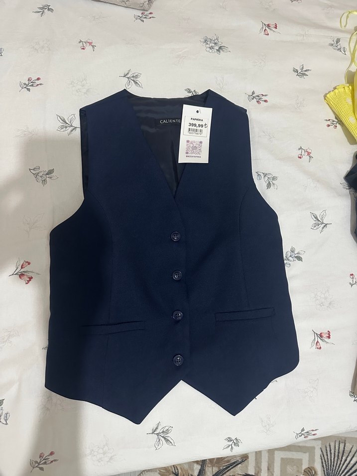 Düğmeli, notched lapel detaylı lacivert kadın yelek, midi boy ve regular fit kesime sahiptir. Ofis ve günlük kullanıma uygundur.