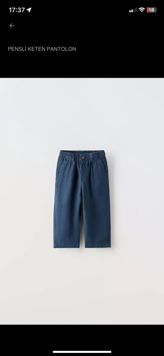 Lacivert keten kumaştan, düğmeli, bol kesim erkek çocuk pantolonu. Sade ve günlük kullanıma uygun. Üzerindeki izler ütünün buharından dolayı oluşmuş herhangi bir leke değildir.