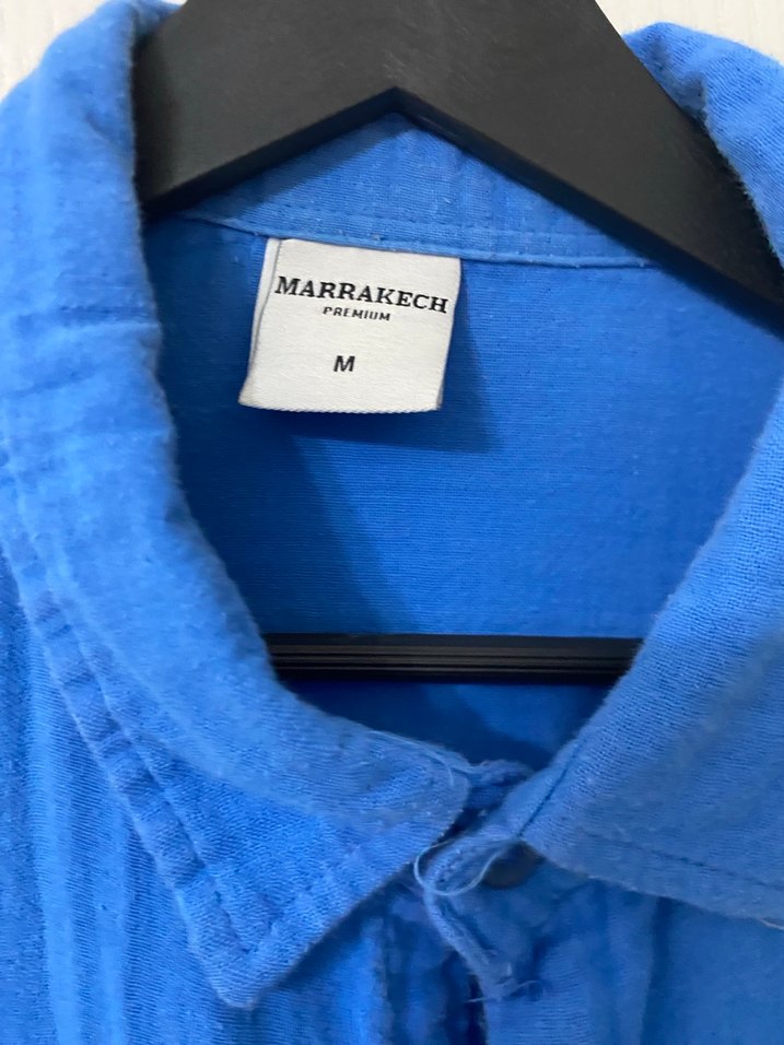 Düğmeli, uzun kollu, yakalı lacivert keten kadın gömleği. Rahat kesim ve göğüs cebine sahip. Günlük kullanım için minimalist sokak stili.