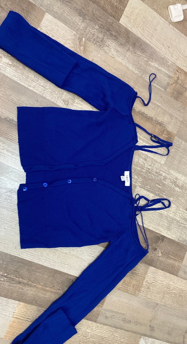 Düğmeli, uzun kollu, lacivert triko hırka, kızlar için dar kesim ve sade sokak stili sunar. Düz ve desensiz dokusu vardır.