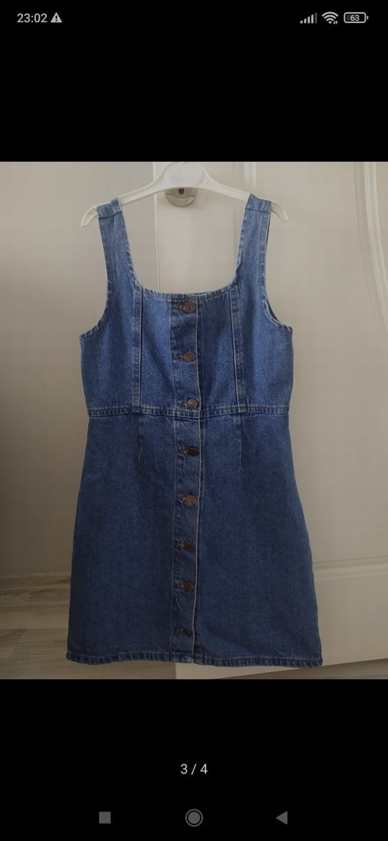 Düğmeli ön kısmı, askısız yakası ve dar kesimi ile kot kumaştan yapılmış kısa tulum. Parlak lacivert rengi ve midi boyu günlük kullanım için uygundur. çocuk için bile uygun olabilir ölçü sorabilirsiniz ⭐