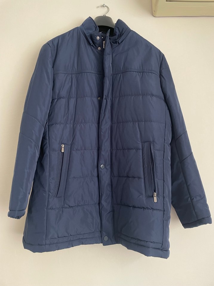 Düğmeli, kesik yaka detaylı, midi boy, rahat kesim erkek kabanı.Yumuşak ve sıcak kumaştan yapılmış olup, lacivert renklidir.Günlük kullanıma uygundur.