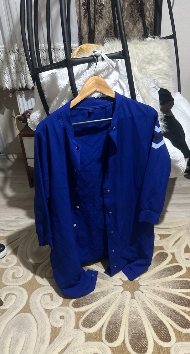 Lacivert, düğmeli, uzun kollu, notched lapel yakalı, midi uzunlukta, sentetik kumaştan yapılmış bol kesim hamile ceketi. Günlük kullanıma uygun casual tarzda.