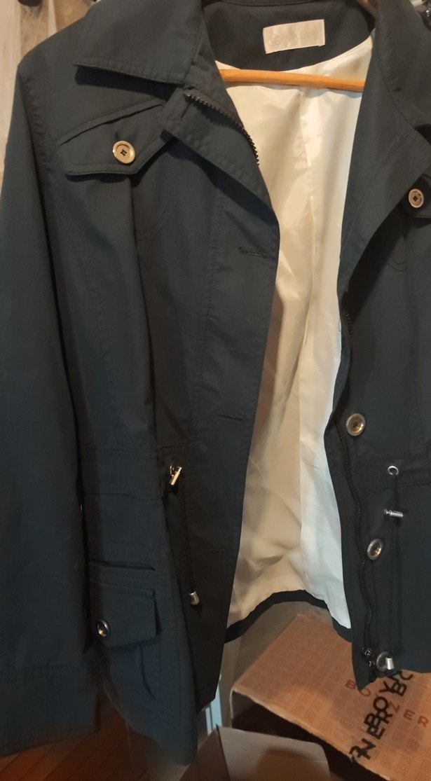 lacivert renkli, düğmeli ve notched yakalı midi uzunlukta kadın ceketi. Uzun kollu, regular fit ve sentetik kumaştan üretilmiştir.