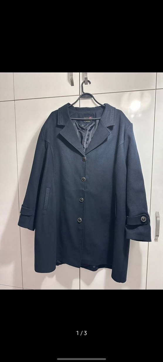 58 bedendir iki koltuk arasi 66 cm kol boyu 64 boy 104 cm Bu lacivert kadın kaban, düğmeli ön ve kesik yaka detayıyla dikkat çeker. Uzun kollu, normal kesim ve yumuşak sıcak tutan kumaştan üretilmiştir.