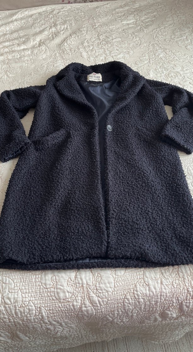 Lacivert midi kaban, düğmeli ve kesik yakalıdır. Yumuşak ve rahat kumaştan, bol kesimdir, günlük kullanım için uygundur. Tesettür içinse uygundur