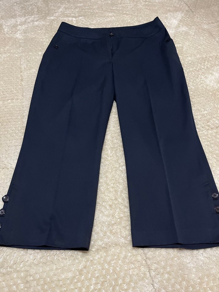 Düğmeli detaylara sahip, normal boy midi lacivert kadın pantolon.Rahat kesim, ofis ve günlük kullanıma uygun.
