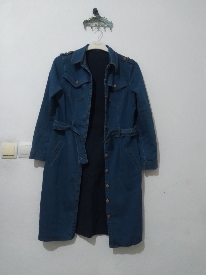 Düğmeli Lacivert Midi Kot Ceket