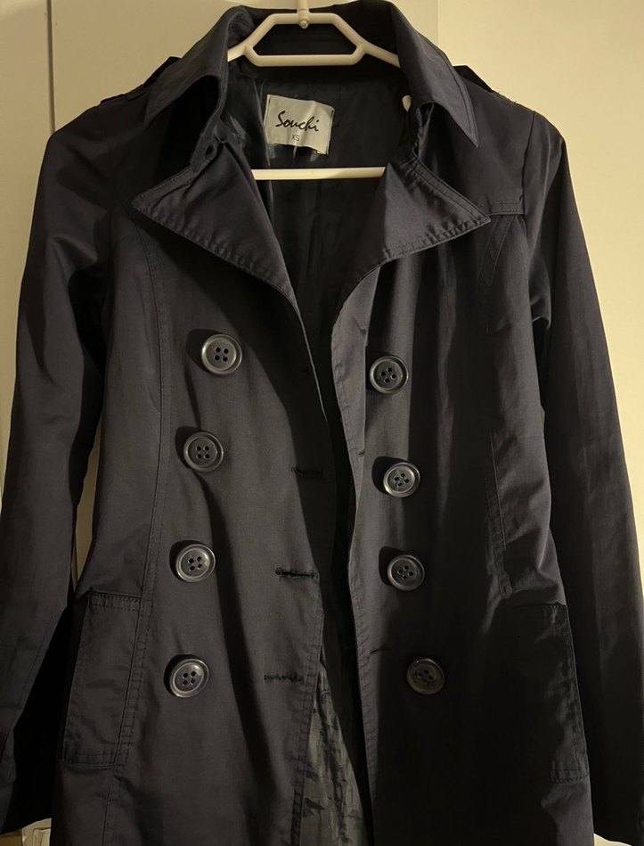 Düğmeli, siyah renkli, midi boy ve uzun kollu bu trençkot, kesimli ve çentikli yaka detayına sahiptir. Günlük kullanıma uygundur.