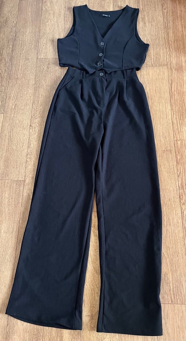 Düğmeli, V yakalı lacivert yelek, kısa ve regular fit. Sentetik kumaştan, ofis kullanımı için uygun.